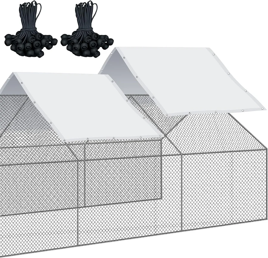 Versatile and Customizable: the large metal chicken coop cover is not only adjustable to fit various chicken coop shapes, but can also be adopted with multiple covers; If your cage size is small, this coop cover supports cutting and DIY modifications to suit your specific needs; This feature provides flexibility, allowing you to tailor the cover to your chickens' coop exact size and shape